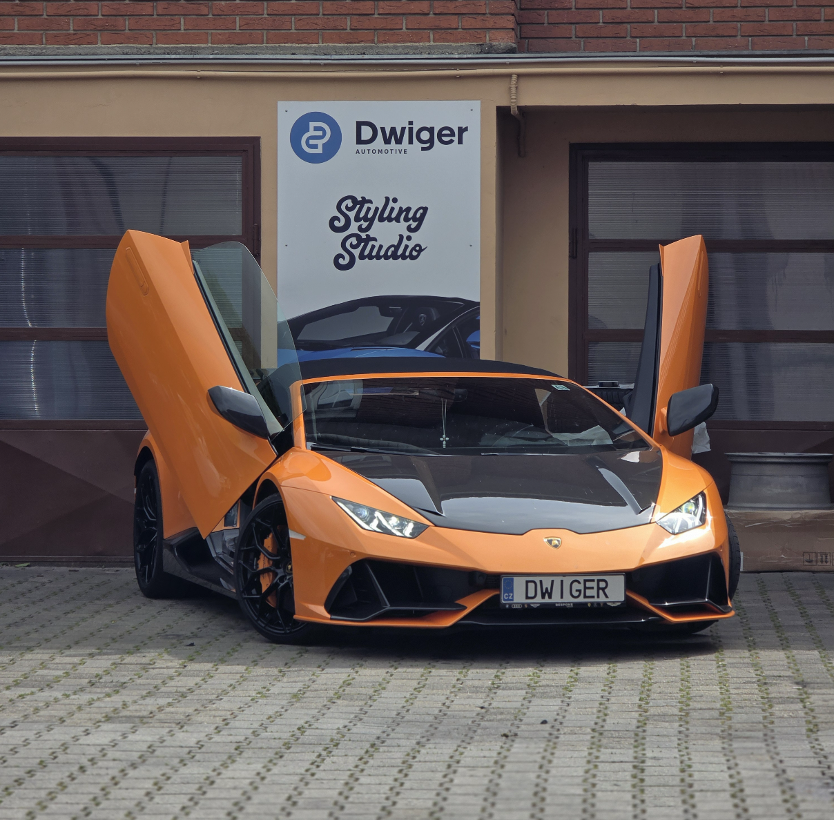V Dwiger Automotive jsme provedli jednu z nejatraktivnějších úprav – instalaci vertikálních dveří (tzv. Lambo Doors) na Lamborghini Huracán 2024. Tento vizuální prvek výrazně zvyšuje exkluzivitu vozu a přitahuje pozornost všude, kde se objeví.